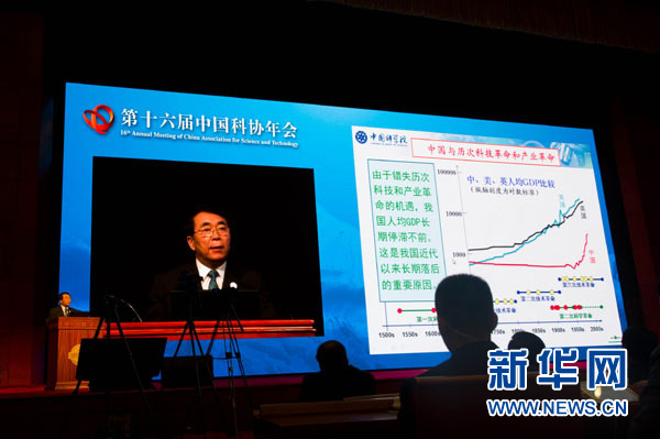 5月24日,中國(guó)科學(xué)院院長(zhǎng)白春禮在第十六屆中國(guó)科協(xié)年會(huì)上作特邀報(bào)告。中國(guó)科學(xué)院院長(zhǎng)白春禮在當(dāng)日開幕的第十六屆中國(guó)科協(xié)年會(huì)上作大會(huì)特邀報(bào)告時(shí)說,回顧人類社會(huì)發(fā)展過程中經(jīng)歷的五次科技革命,可以得出科學(xué)先導(dǎo)、雙輪驅(qū)動(dòng)和科技強(qiáng)國(guó)三大啟示。新華社發(fā)(胡超 攝)