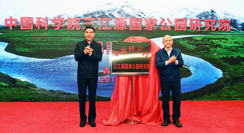 王建軍和張亞平共同為“中國(guó)科學(xué)院三江源國(guó)家公園研究院”揭牌。