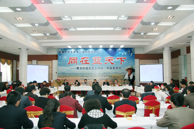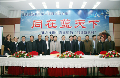 2009年3月18日下午,由中國(guó)科學(xué)院蘭州分院承辦、甘肅省科學(xué)院、甘肅省農(nóng)業(yè)科學(xué)院、甘肅省社會(huì)科學(xué)院等單位聯(lián)辦的主題為《同在藍(lán)天下——努力打造生態(tài)文明的“和諧新農(nóng)村”》的甘肅創(chuàng)新發(fā)展第二屆科學(xué)家論壇在西北賓館舉行。省長(zhǎng)助理夏紅民、省委宣傳部常務(wù)副部長(zhǎng)吉西平、省扶貧辦主任沙拜次力、省科技廳副廳長(zhǎng)陳繼、省農(nóng)牧廳副廳廠(chǎng)尚勛武、省發(fā)改委副巡視員陳江,以及來(lái)自省委宣傳部、省政府研究室、省發(fā)改委、省科技廳、省農(nóng)牧廳、省扶貧辦、省社科院、、省農(nóng)科院、省科學(xué)院、中科院蘭州分院等單位的領(lǐng)導(dǎo)和專(zhuān)家近100名參加了此次論壇。